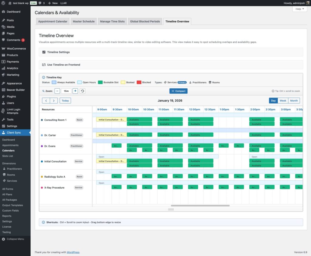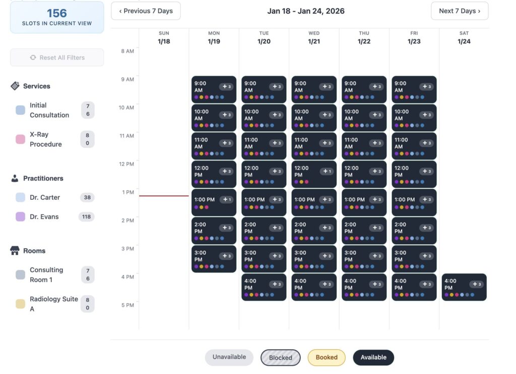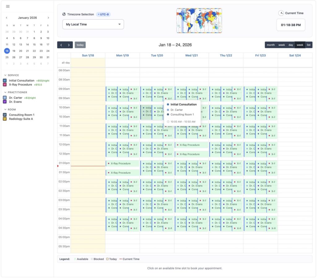 - 🧩 True Resource Scheduling: Do you rent boats? Manage a medical clinic? Run a salon? With our unique "Dimensions" system, a booking is only confirmed if the Service, the Staff Member, AND the Room/Equipment are all available simultaneously. No more double-booking your X-Ray room or your best pontoon boat.